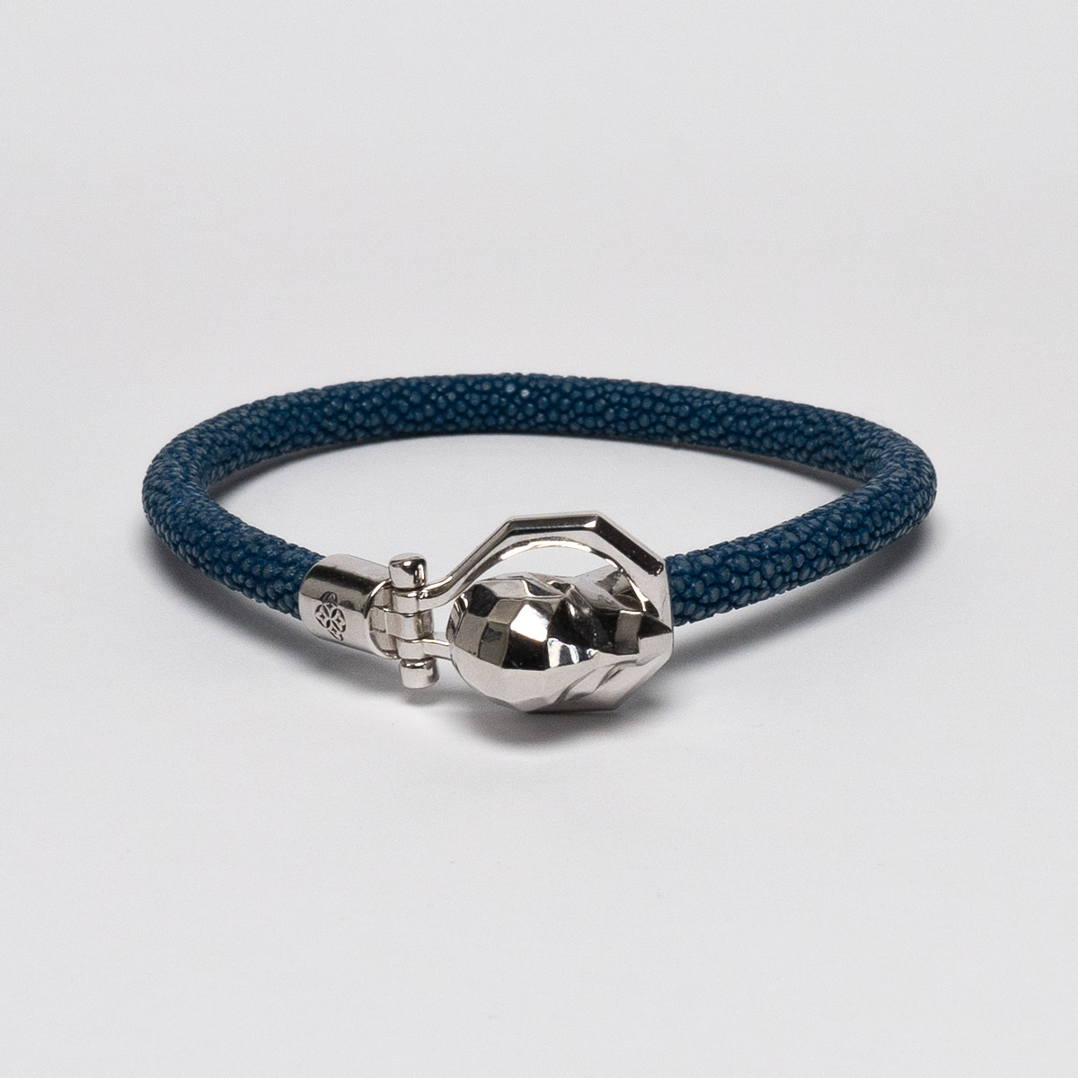 Make a statement with the deep blue stingray leather bracelet. Its rich, oceanic tone and unique texture create a refined yet striking accessory that enhances any outfit. Crafted for those who appreciate bold details, this bracelet exudes confidence and individuality with every wear.